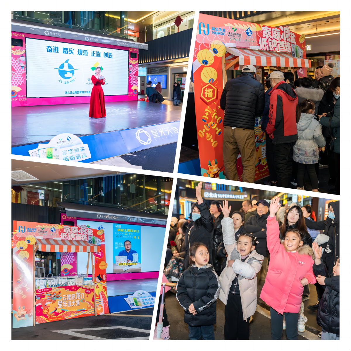1月20日,由湖北鹽業(yè)集團有限公司市場部策劃、鄂西南分公司承辦的“云集躍龍門 星年逛大集”年貨大集活動在宜昌市西陵區(qū)盛大舉行。本次活動得到了西陵區(qū)政府、商務(wù)局、云集街道辦事處、云集街道商會和星光天地商業(yè)街的大力支持?;顒硬粌H引領(lǐng)食鹽消費新風(fēng)尚,也為市民們帶來了一場集購物、娛樂、體驗于一體的年貨盛宴。