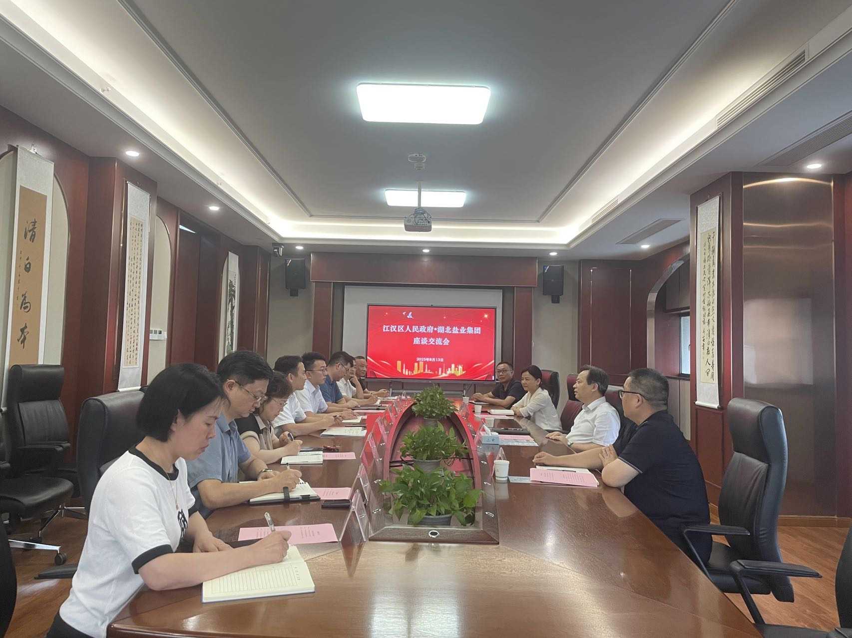 曹建聽取了湖北鹽業(yè)集團歷史沿革、經(jīng)營業(yè)績、業(yè)務拓展等方面的情況介紹。他指出,湖北鹽業(yè)集團歷史悠久,在經(jīng)營成效、品牌建設、產(chǎn)業(yè)布局等方面取得了亮眼成績;作為省內(nèi)唯一集食鹽產(chǎn)供銷于一體的省屬國企和省政府定點食鹽儲備單位,一直積極承擔國企責任,守護人民的“鹽罐子”,為江漢區(qū)經(jīng)濟社會發(fā)展貢獻了重要力量。他強調(diào),江漢區(qū)政府將立足湖北鹽業(yè)集團發(fā)展所需,竭力提供最佳環(huán)境、最好服務、最強保障,一如既往在政策扶持、優(yōu)化營商環(huán)境等方面提供全力支持,助力湖北鹽業(yè)集團做強做優(yōu)做大;希望雙方在產(chǎn)品推廣、項目投資、資產(chǎn)運營等方面深化合作,共同推動江漢區(qū)經(jīng)濟社會全面繁榮。