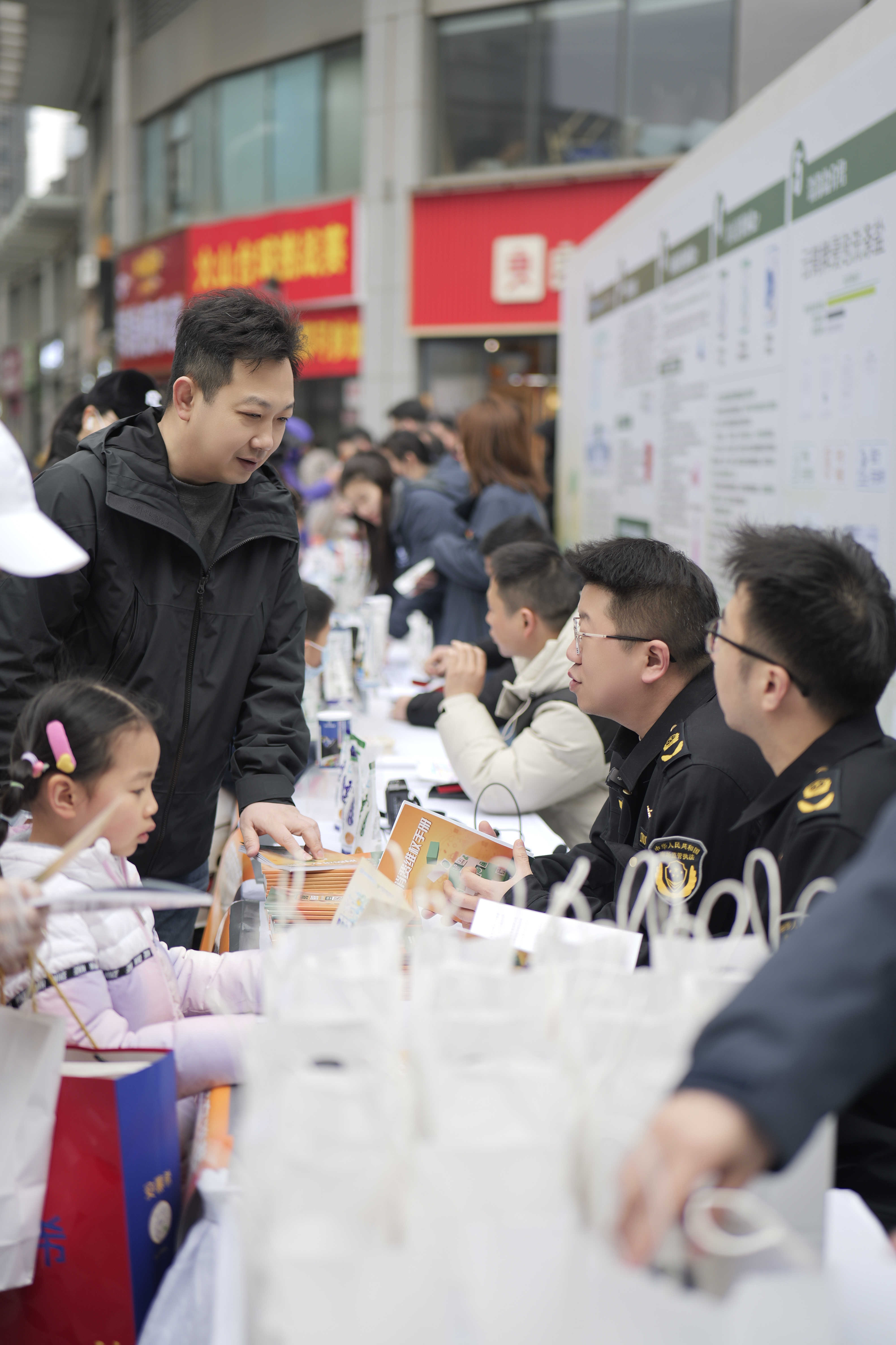 消費維權(quán)咨詢服務(wù)臺前人來人往,江漢區(qū)市場監(jiān)管局、花樓街市場監(jiān)管所工作人員耐心答疑解惑、受理投訴,發(fā)放消費維權(quán)手冊為消費者消費維權(quán)“支招”。