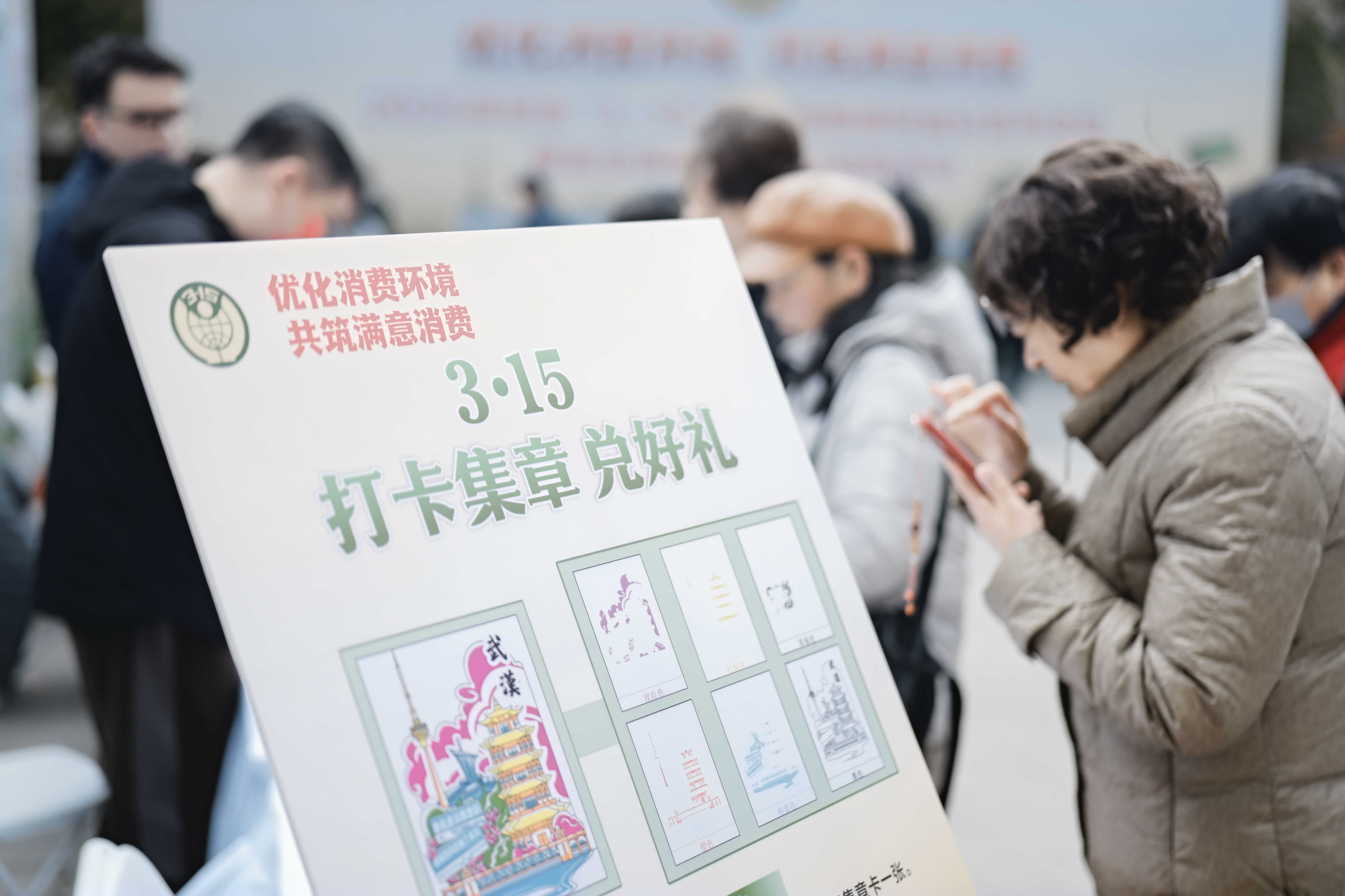 為增加活動的趣味性,提升消費者的參與感,現(xiàn)場開展了“3?15” 打卡集章兌好禮的活動。參與者穿梭于 6 個主題展臺,集齊特色套章,兌換驚喜小禮品?,F(xiàn)場消費者積極參與,歡聲笑語回蕩現(xiàn)場。