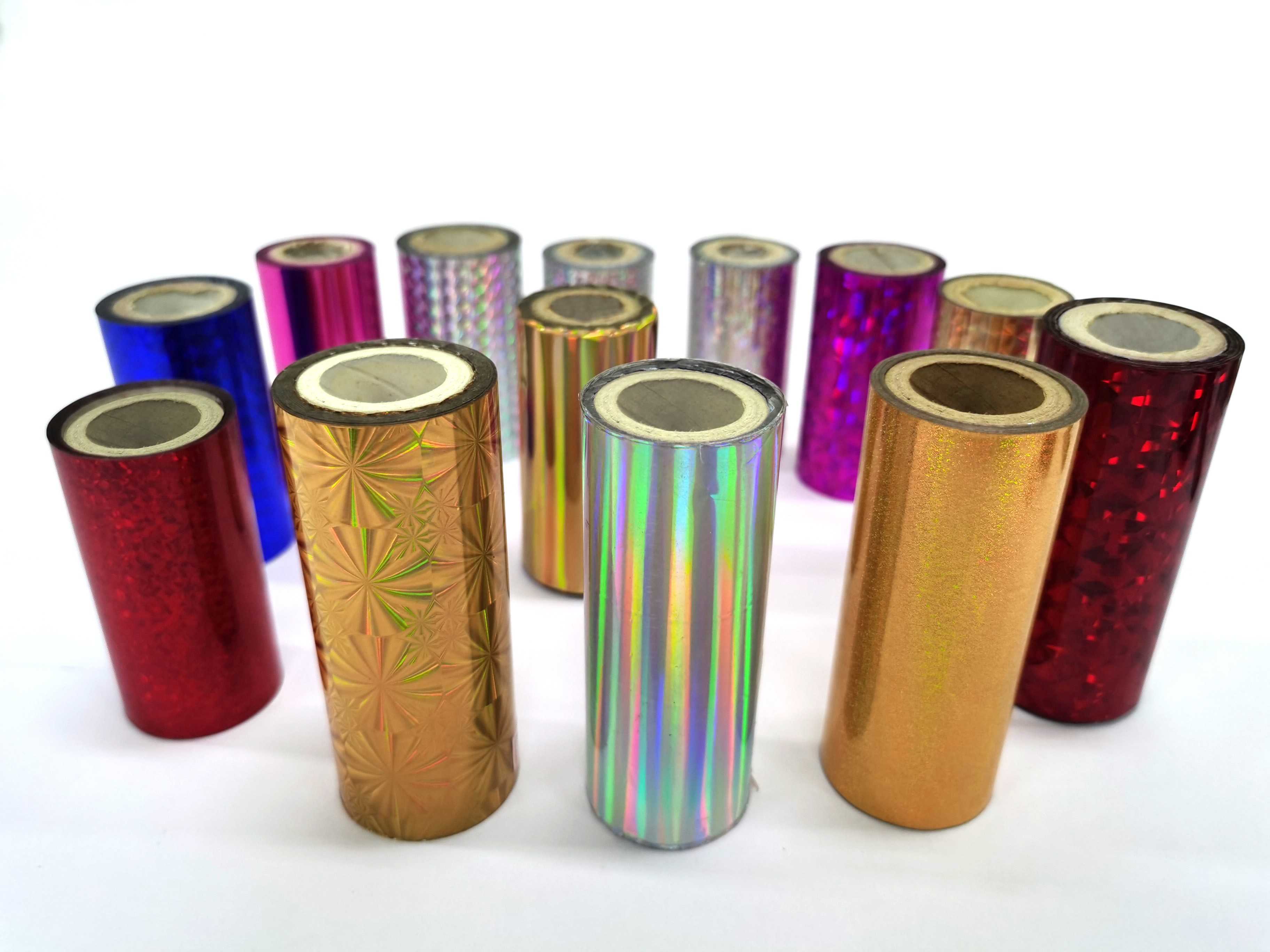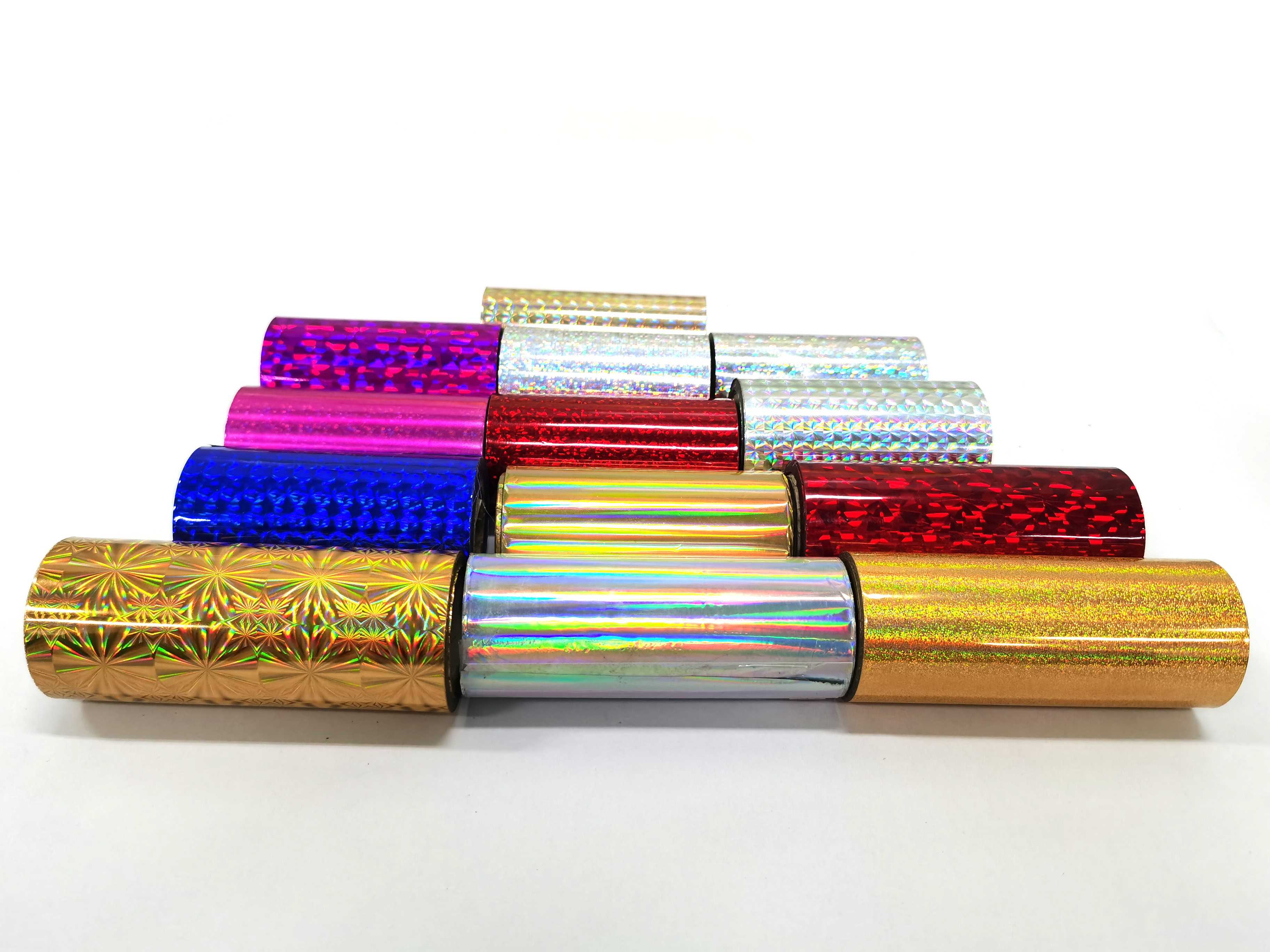 采用行業(yè)通用的激光全息圖案(如光柵、光柱、花版等)通過模壓的方式壓印于PET薄膜而成。